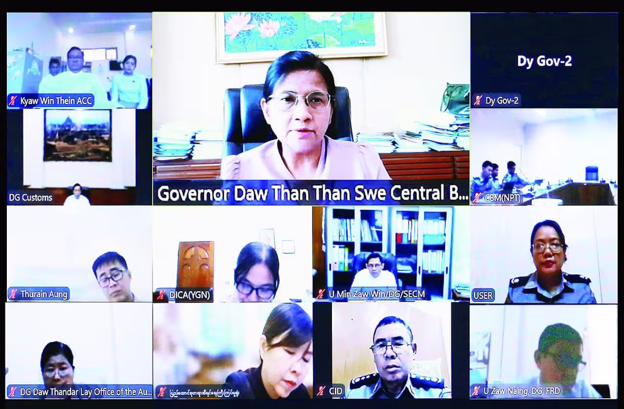 ▪️ အစည်းအဝေးသို့ မြန်မာနိုင်ငံတော်ဗဟိုဘဏ်ဥက္ကဋ္ဌ ဒေါ်သန်းသန်းဆွေ၊ ဒုတိယဥက္ကဋ္ဌ ဒေါက်တာလင်းအောင်၊ အဂတိလိုက်စားမှုတိုက်ဖျက်ရေးကော်မရှင်အဖွဲ့ဝင် ဦးကျော်ဝင်းသိန်း၊ မြန်မာနိုင်ငံတော်ဗဟိုဘဏ်မှ တာဝန်ရှိသူများ၊ ငွေကြေးခဝါချမှုနှင့် အကြမ်းဖက်မှုကို ငွေကြေးထောက်ပံ့မှုတိုက်ဖျက်ရေးဆိုင်ရာ လုပ်ငန်းအဖွဲ့ဝင်များနှင့် တိုးတက်မှုအစီရင်ခံစာမူကြမ်း စိစစ်ရေးသားရေးအဖွဲ့ဝင်များဖြစ်သည့် ဥပဒေရေးရာဝန်ကြီးဌာန၊ အထွေထွေအုပ်ချုပ်ရေးဦးစီးဌာန၊ အထူးစုံစမ်းစစ်ဆေးရေးဦးစီးဌာန၊ ငွေရေးကြေးရေးကြီးကြပ်စစ်ဆေးရေးဦးစီးဌာန၊ အကောက်ခွန်ဦးစီးဌာန၊ ပြည်တွင်းအခွန်များဦးစီးဌာန၊ မြန်မာနိုင်ငံငွေချေးသက်သေခံလက်မှတ်လုပ်ငန်း ကော်မရှင်အဖွဲ့ရုံး၊ ရင်းနှီးမြှုပ်နှံမှုနှင့် ကုမ္ပဏီများညွှန်ကြားမှုဦးစီးဌာန၊ မြန်မာ့ကျောက်မျက်ရတနာ ရောင်းဝယ်ရေးလုပ်ငန်း၊ သစ်တောဦးစီးဌာန၊ ပြည်ထောင်စုစာရင်းစစ်ချုပ်ရုံး၊ မြန်မာနိုင်ငံရဲတပ်ဖွဲ့ဌာနချုပ် (ဥပဒေရေးရာနှင့် မှုခင်းဌာနကြီး၊ နိုင်ငံဖြတ်ကျော်မှုခင်းဌာနကြီး)၊ မှုခင်းရဲတပ်ဖွဲ့၊ အဂတိလိုက်စားမှုတိုက်ဖျက်ရေးကော်မရှင်၊ မူးယစ်ဆေးဝါးတားဆီးနှိမ်နင်းရေး ရဲတပ်ဖွဲ့နှင့် ငွေကြေးဆိုင်ရာစုံစမ်းထောက်လှမ်းရေးအဖွဲ့တို့မှ တာဝန်ရှိသူများ တက်ရောက်ကြသည်။