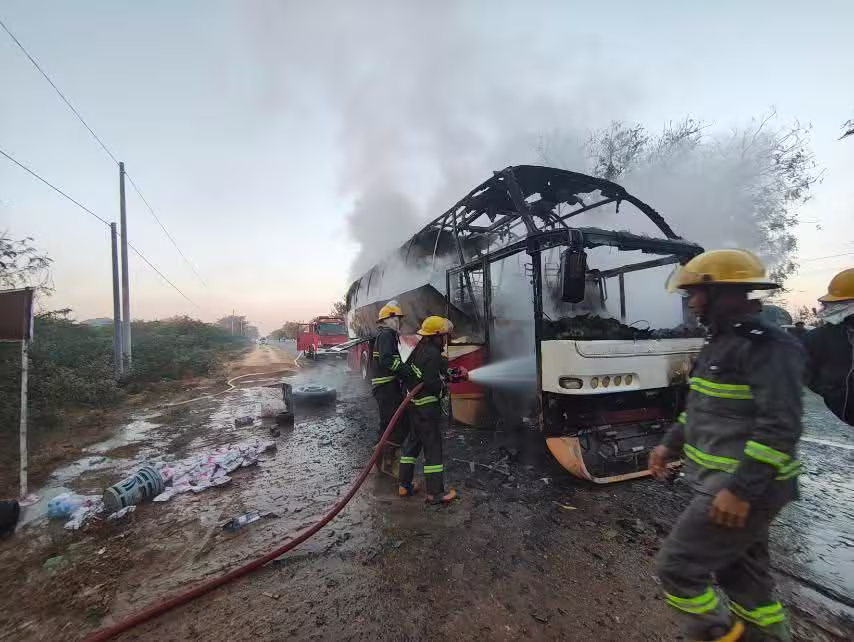 ■ ဖြစ်စဉ်မှာ ယနေ့ ၃၁.၁၂.၂၀၂၅ရက်နေ့၊ နံနက် ၀၆ နာရီ၄၀ မိနစ်အချိန်ခန့်က မန္တလေးတိုင်းဒေသကြီး၊ စဉ့်ကိုင်မြို့နယ်၊ ကြေးနီကန်ကျေးရွာတံတားအနီး၊ ပလိပ်- စကားအင်းလမ်းပေါ်တွင် Express ယာဉ်(၁)စီး မီးလောင်မှုဖြစ်ပွားခဲ့ခြင်းဖြစ်ပြီးအဆိုပါမီးလောင်ရာနေရာသို့ စဉ့်ကိုင်မြို့နယ်မီးသတ်စခန်းမှ မီးငြှိမ်းသတ်ယာဉ်(၁)စီး၊ ပလိပ်နယ်မြေမီးသတ်စခန်းမှ မီးသတ်ရေသယ်ယာဉ်(၁)စီး၊ သန္ဓေမီးသတ်တပ်ဖွဲ့ဝင်များ၊ အရန်မီးသတ်တပ်ဖွဲ့ဝင်များဖြင့် ထွက်ခွာငြှိမ်းသတ်ခဲ့ရာ နံနက် ၀၇နာရီ ၁၀မိနစ်အချိန် မီးငြိမ်းခဲ့ကြောင်းသိရသည်။