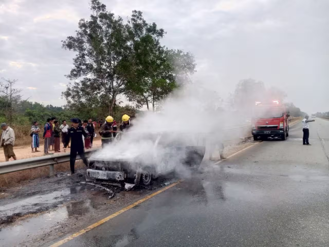 ■ ဇန်နဝါရီ ၂၂ရက်နေ့၊ မနက် ၇ နာရီ ၅၉ မိနစ်အချိန်ခန့်က ရန်ကုန်တိုင်းဒေသကြီး၊ လှည်းကူးမြို့နယ်၊ ရန်ကုန်-မန္တလေးအမြန်လမ်းမကြီး၊ မိုင်တိုင်အမှတ်(၁၅/၇)တွင် ကား(၁)မီးလောင်မှုဖြစ်ပွားကြောင်း သတင်းရရှိသဖြင့် ၁၁မိုင်အမြန်လမ်းမီးသတ်စခန်းမှ မီးငြှိမ်းသတ်ယာဉ်(၁)စီး၊ လှည်းကူးမြို့နယ်မီးသတ်စခန်းမှ မီးသတ်ရေသယ်ယာဉ်(၁)စီးဖြင့် ထွက်ခွာငြှိမ်းသတ်လျက်ရှိခဲ့ရာ ၈နာရီ ၉မိနစ် အချိန်တွင်မီးငြိမ်းခဲ့ကြောင်းသိရသည်။