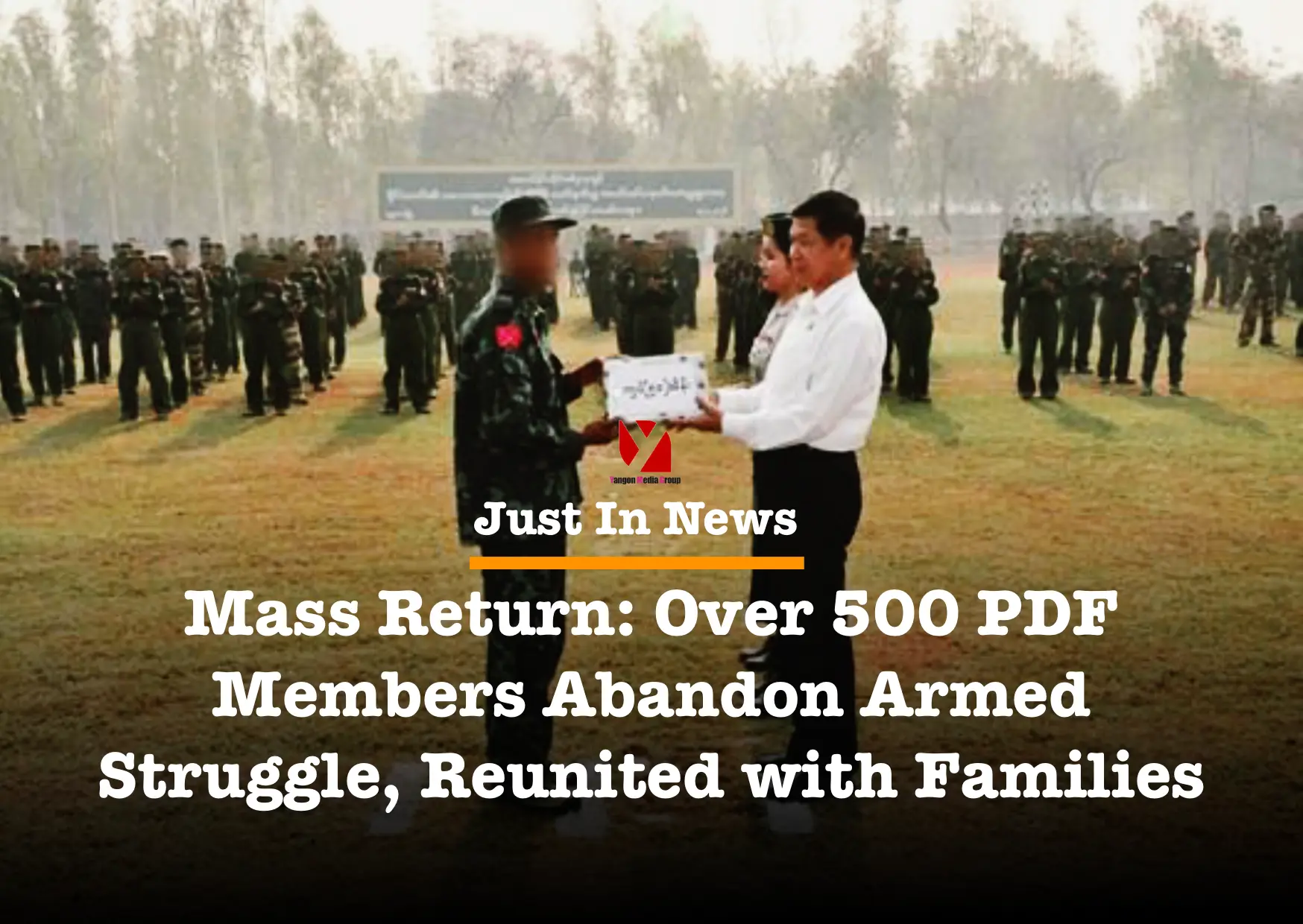 NAYPYIDAW — March 19, 2026 — In one of the largest mass returns to date, more than 500 members of the People's Defense Force (PDF) have laid down their arms and returned to the legal fold en masse, authorities announced Thursday.
