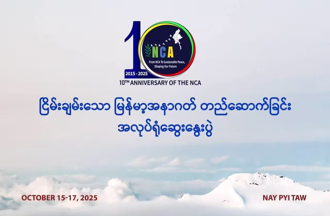 ▪️ အဆိုပါ NCA (၁၀)နှစ်ပြည့်အခမ်းအနားတွင် “ငြိမ်းချမ်းသောအနာဂတ်တည်ဆောက်ခြင်း”အလုပ်ရုံဆွေးနွေးပွဲကို အောက်တိုဘာ ၁၅ ရက်မှ ၁၇ ရက်အထိ အမျိုးသားစည်းလုံးညီညွတ်ရေးနှင့် ငြိမ်းချမ်းရေးဖော်ဆောင်မှုညှိနှိုင်းရေးကော်မတီမှ ကြီးမှူး၍ကျင်းပသွားမည်ဖြစ်သည်။