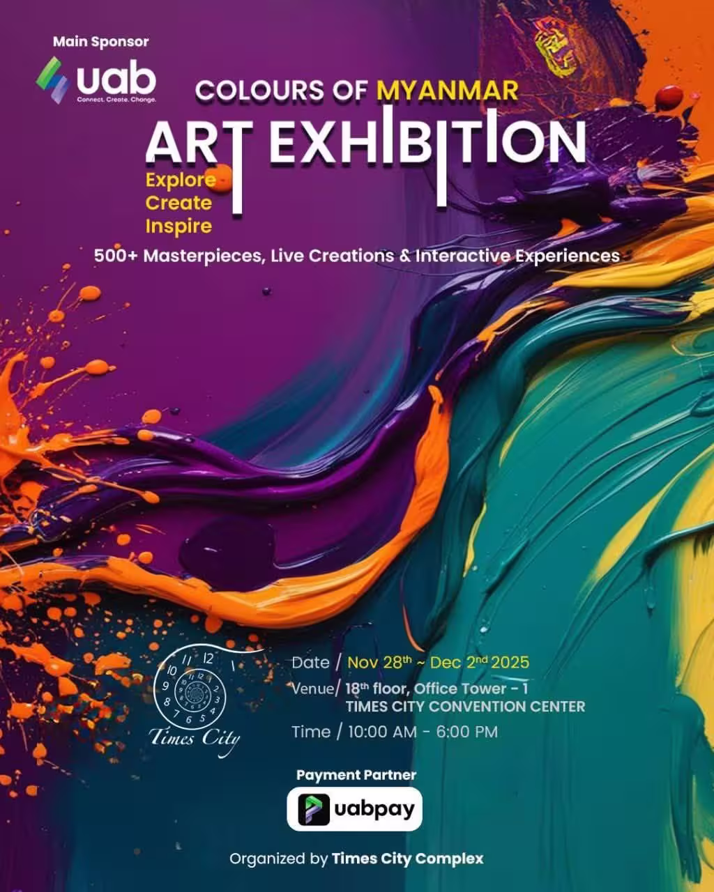 မြန်မာ့ပန်းချီအနုပညာ၏ အလှတရားများနှင့် ရှုမြင်လေ့လာမြန်မာ့အနုပညာ ကိုလေ့လာနိုင်မည်ဖြစ်ကာ နိုဝင်ဘာလ ၂၈ ရက်မှ ဒီဇင်ဘာလ ၂ ရက်အထိ ရန်ကုန်မြို့ Times City Complex ရှိ Times City Convention Center တွင် ကျင်းပပြုလုပ်သွားမည်ဖြစ်ကြောင်းသိရသည်။