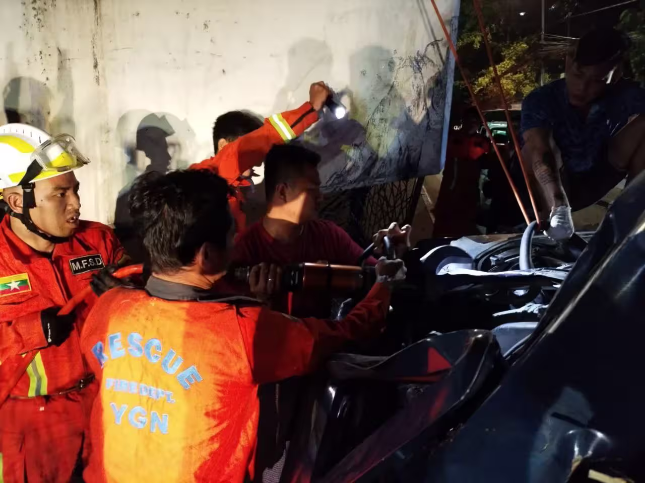 ■ ဖြစ်စဉ်မှာ ဇန်နဝါရီ ၅ ရက်နေ့၊မနက် ၁ နာရီ အချိန်ခန့်က ရန်ကုန်တိုင်းဒေသကြီး၊ ဗဟန်းမြို့နယ်၊ ဗိုလ်ချို(၂)ရပ်ကွက်၊ ကမ္ဘအေးဘုရားလမ်း၊ ရွှေဂုံတိုင်တံတားအောက်တွင် ယာဉ်တိုက်မှုဖြစ်ပွားပြီး လူညှပ်နေကြောင်း သိရသည်။